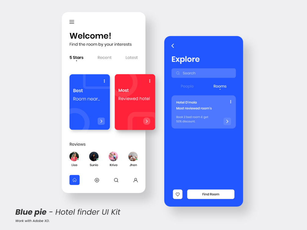 Blue pie - Hotel finder app$0+$0+https://schema.org/InStockusdShivaay Designer'sShivaay Designer's3 ratingsHello Guys,Today I tried to make a layout design for Blue Pie - Hotel finder app. In this app you can search your nearby hotels, rooms and more.Feel free to feedback and rate this product.----------Follow us on Dribbble, Behance and Pinterest.Name a fair price:$Add to cartSize10.4 MBAdd to wishlist New wishlistShare on XShare on Facebook Copy linkCopy product URLRatings4.7(3 ratings)34.75 stars67%4 stars33%3 stars0%2 stars0%1 star0%